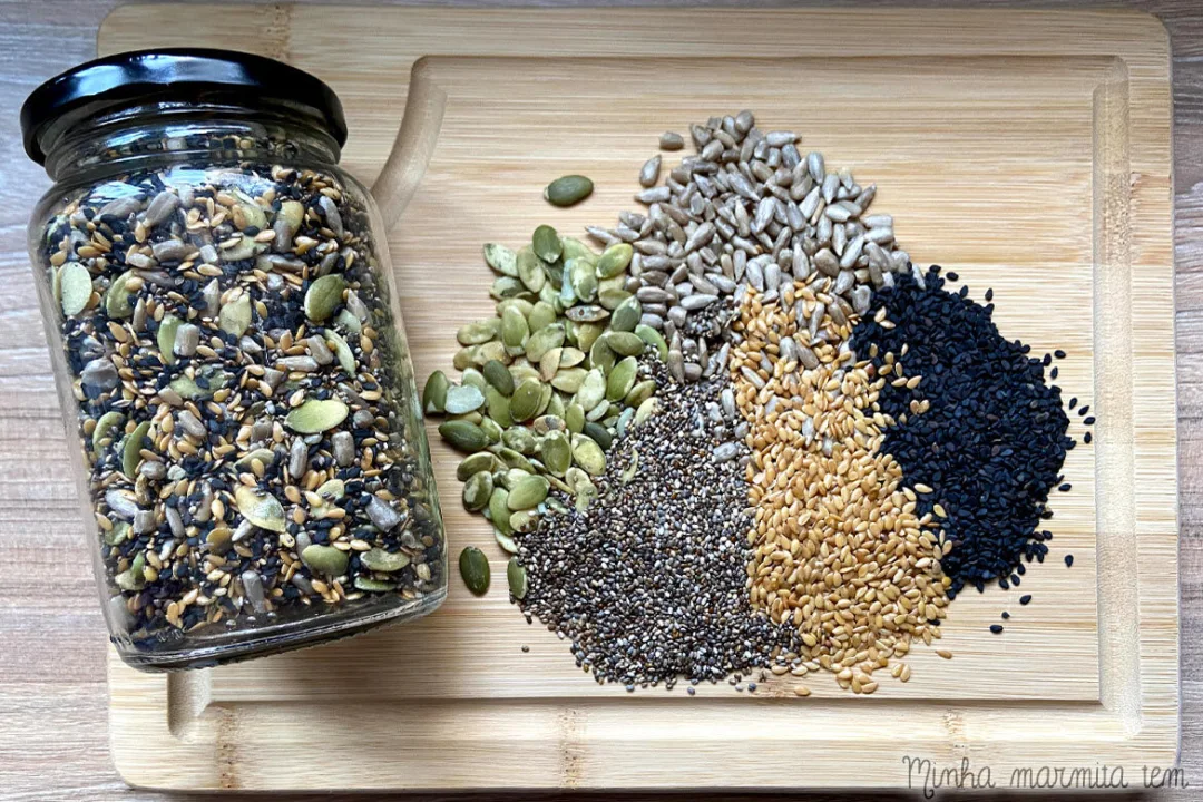 Elaborado com chia, quinoa, linhaça, girassol e semente de abóbora, esse mix é fonte natural de fibras, proteínas vegetais, antioxidantes e ácidos graxos ômega.